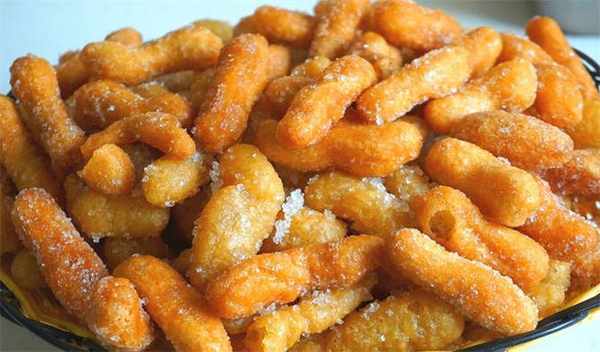 9.咱們的江米條就做好瞭,酥脆香甜不油膩,學會的朋友可以自己試一試。