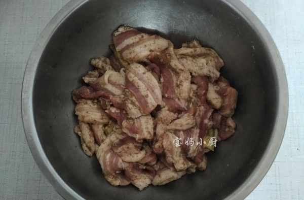 食材:帶皮五花肉720克,薑5片,料酒2湯匙,黑胡椒粉半湯匙,孜然粉1湯匙,五香粉半湯匙,鹽1.2湯匙