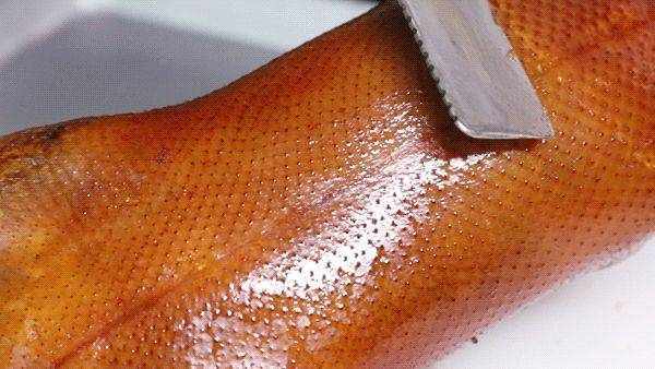 密州烤鴨的風味與北京掛爐鴨並沒有多大區別,最大的特色在於魯菜大廚們能以烤鴨的各種“副產品”制作“全烤鴨宴”:厚實的鴨脯肉用來幹煸、鴨血凝固切片炒韭菜、鴨舌與山菌同燴、鴨腸爆炒、鴨油蒸鱖魚、鴨湯溜海參……琳瑯滿目,不一而足。