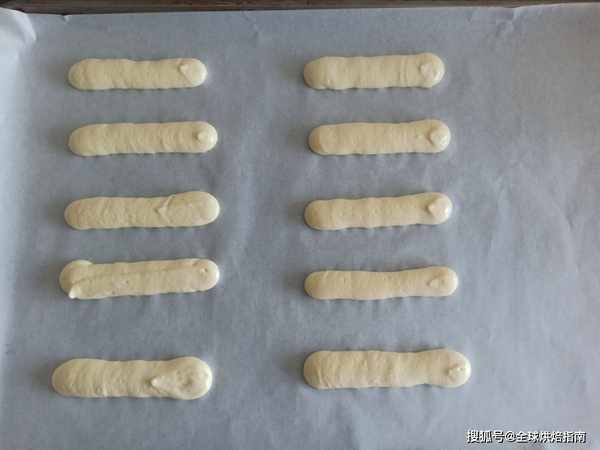 ▶step06:裝裱花袋在墊油紙的烤盤擠長條。