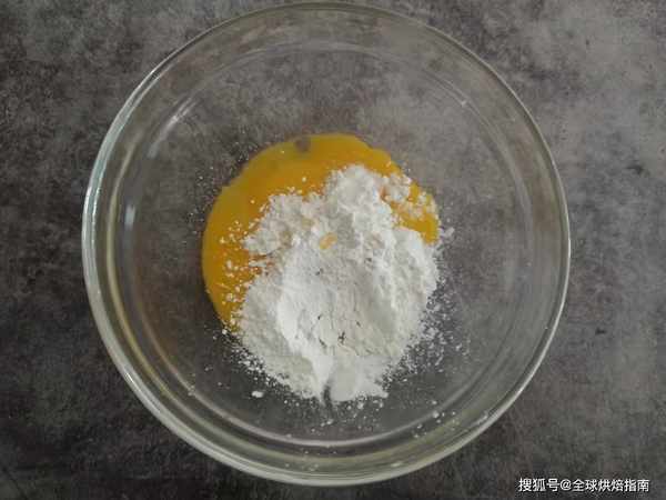 ▶step010:蛋黃,澱粉,砂糖攪勻成糊狀待用。