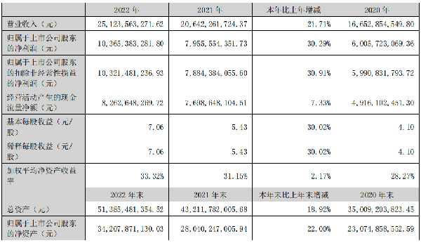 2022年年報顯示,公司實現營收251.24億元,同比增長21.71%,歸母凈利首次突破百億大關至103.65億元,同比增長30.29%。圓滿完成全年營收增長不低於15%的目標。