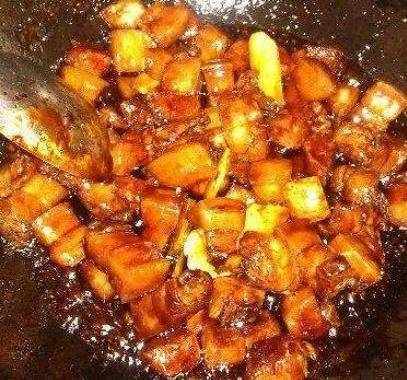 我們平時炒糖色的時候都要在鍋中放入適量的食用油,把糖色炒出來,今天呢,我們不用炒糖色,我們也不用放食用油,直接把焯好的肉塊放到鍋裡,然後開小火慢慢的把鍋中的五花肉煸出豬肉來。然後再把鍋裡煸好的五花肉盛出來,剩下鍋裡煸出的豬油。再放入我們今天說到的蘋果醬,炒蘋果醬的時候要用小火慢慢的炒,蘋果醬是很容易炒出顏色的,而且顏色還很漂亮呢。(如果傢裡沒有蘋果醬,也不用著急,隻要用蘋果,白醋,還有冰糖,這三種食材放一起熬制15分鐘,就能熬出傢用的蘋果醬。)