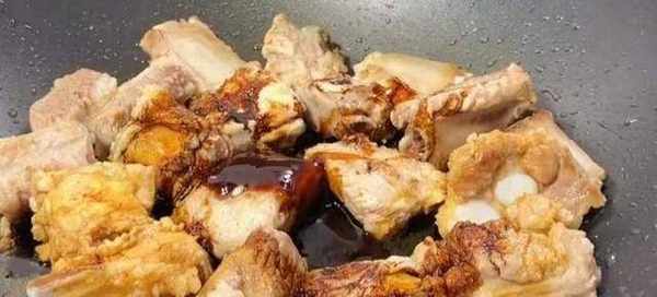 3、接著再起鍋,放入少許食用油,油熱後再把排骨倒進鍋裡面,開中小火,把排骨煎一下,表面有點微微變黃就可以瞭。接著放入一勺生抽,老抽上色。蠔油,翻炒均勻,炒至排骨上色,再把所有的大料給它倒進來炒出香味。倒入半瓶啤酒,倒入啤酒可以軟化肉質,做出來的排骨吃著也更香。適量的清水,一塊冰糖,食鹽調味,然後再扣上蓋子,轉中小火先給它燉煮半個小時。