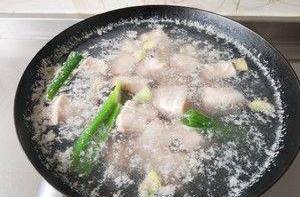 將五花肉塊洗凈,用冷水下鍋,加入蔥薑酒,水開後繼續煮3~5分鐘。