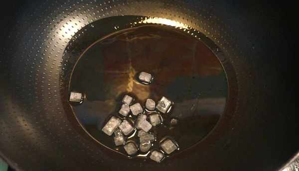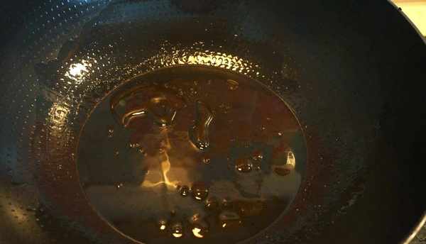 3.炒鍋中倒少許油,將一小把冰糖入鍋中,小火炒化;