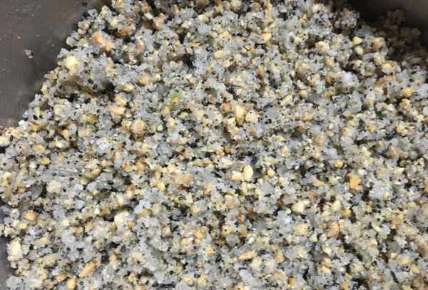黃花夢的餡料,炒花生米打碎,冬瓜條切碎,加上熟芝麻,白砂糖等。