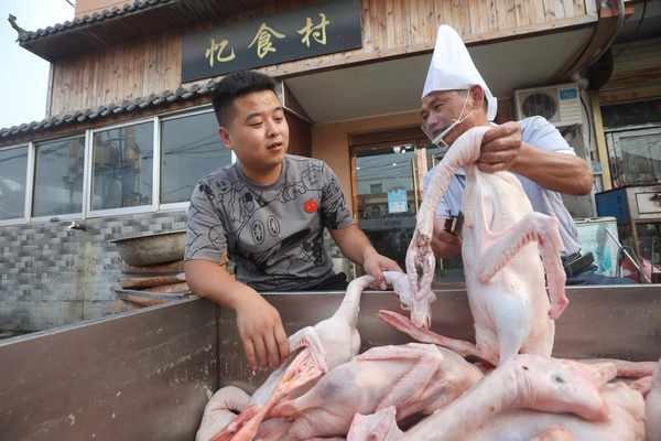 據憶食村第四代傳人任江波介紹,因憶食村鹵鵝食材好、品相佳、口味正,慕名而來的顧客特別多,線上線下年銷售鹵鵝達萬餘隻。