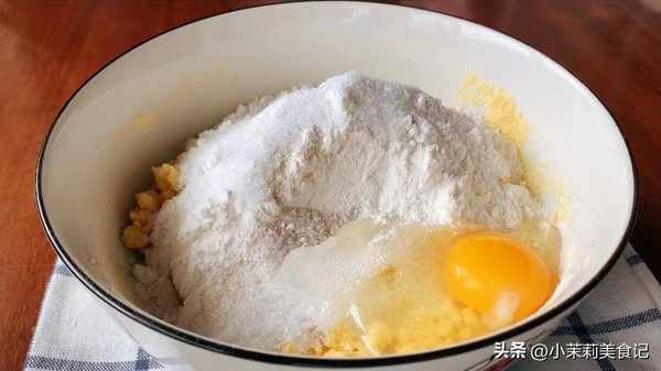3、接著加入200克面粉,10克糖,3克酵母,一個雞蛋,先將這些食材攪勻,然後繼續一點一點加入純牛奶,一直將所有的食材揉成一個中度軟硬的面團。然後用濕佈或保鮮膜包好,放到溫度比較高的地方,發酵至兩倍大。