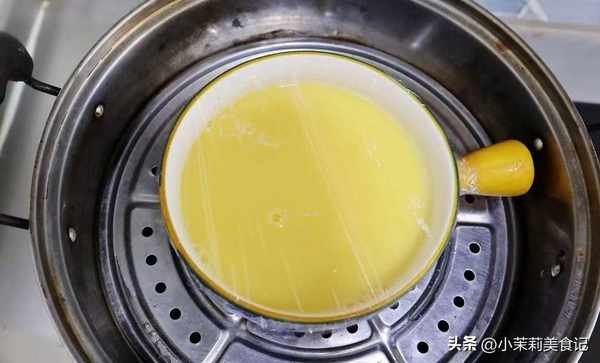 4、在蒸制的過程中,鍋內會有水蒸氣不斷形成,所以最好用保鮮膜把蒸碗包住,這樣避免水蒸氣凝結成的水滴落進去。水開後計時八分鐘,關火後燜兩分鐘。