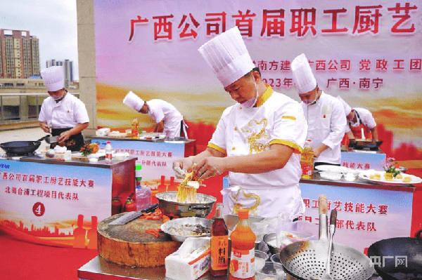 央廣網南寧4月29日消息(記者羅蘭 通訊員梁瑜琳)在“五一”國際勞動節即將到來之際,4月28日,中化學南方建投廣西公司舉辦瞭職工廚藝技能大賽,豐富員工精神文化生活,增進員工情感交流。來自該公司的9名廚師各自施展看傢本領,運用“煎、炒、燜、燉、煮”多種烹飪方法,炮制各色名菜名點。