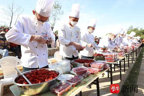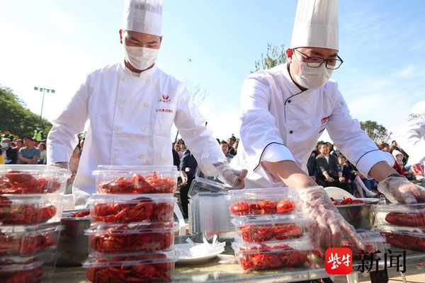 4月29日,在江蘇盱眙第一山歷史文化街區舉辦的“2023年第一山文旅消費季”活動上,由23傢烹飪名廚進行現場烹制,每傢100隻,總計約2300隻龍蝦現場香飄四溢,“舌尖上的美味”盱眙龍蝦挑起瞭市民和遊客們的味蕾。