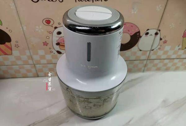 第2步:將蓮藕、豬肉放到料理機中攪拌成蓮藕豬肉餡;同時,薑和蔥也加入到料理機中,攪拌均勻;