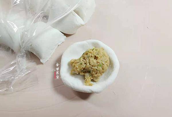 第5步:和好的面團反復揉搓,更有韌性,取劑子搓圓後捏成小窩狀,放上適量餡料,右手虎口收口;和好之後蓋上濕佈或是保鮮膜以免水分被吹幹;和面團的另一個方法,在文末呈上;