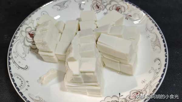 第二步:準備一塊嫩豆腐切成小塊備用。