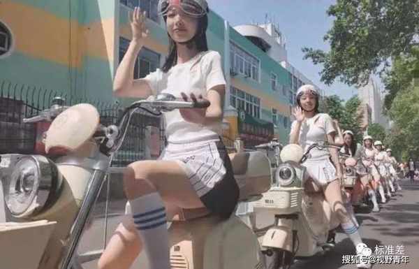 熱搜的視頻裡,一字排開的高個子小姐姐身著網球服、迷你超短裙,列隊坐在各自的電瓶車上,戴著頭盔沖鏡頭招手。