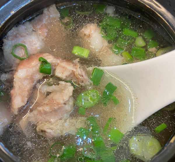 湯是跟印象裡一樣,一如概往的好喝,感覺客傢人對這道湯的做法還是比較統一的。借機問瞭老板娘做法,她的回答是:“並沒有固定的部分搭配。排骨、豬心、豬肝、粉腸……都可以跟瘦肉隨意搭配。”也可以隻放瘦肉,不放內臟。那又是另一種風味。