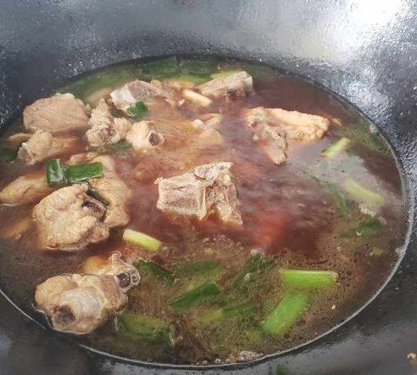 第8步、開鍋後蓋上鍋蓋,轉小火燉制一個小時,開始收汁,收汁時放入鹽,不勾芡,自然收汁,湯汁收至粘稠,均勻的包裹上排骨。