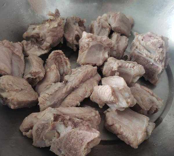第1步、排骨剁成均勻段。