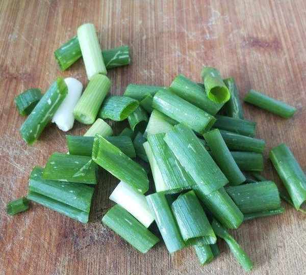 第5步、蔥洗凈,切段。