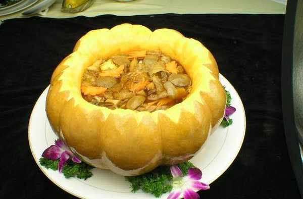 主料:海參1頭、小南瓜1個、雞蛋2個;輔料:小蔥末適量、橄欖油適量、鹽適量。