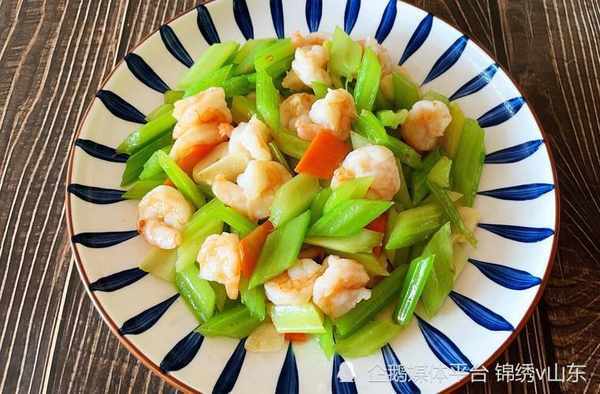 ④另起鍋加油,燒熱後倒入芹菜翻炒,炒到斷生,再倒入蝦仁翻炒均勻。