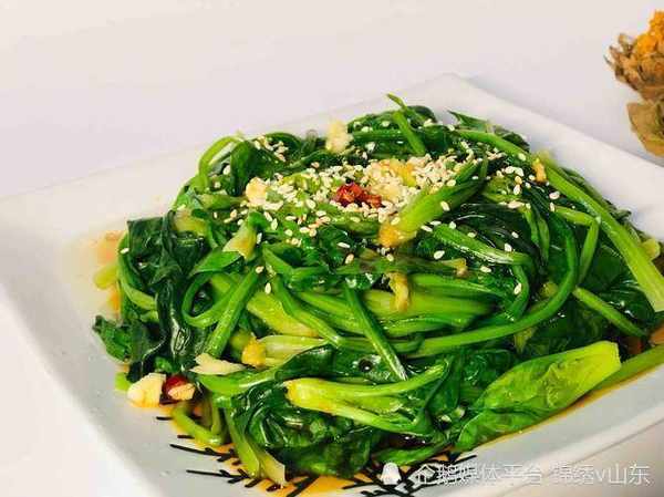 5潑在菠菜上面,拌均勻即可享用瞭,開胃解油膩,好吃。