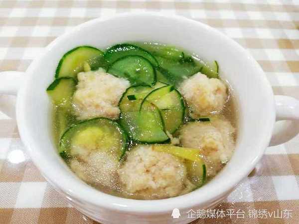 3,鍋裡留一部分肉丸,放入一些黃瓜片和泡好的木耳,煮一分鐘左右,加鹽胡椒粉,香油調味就可以出鍋瞭。