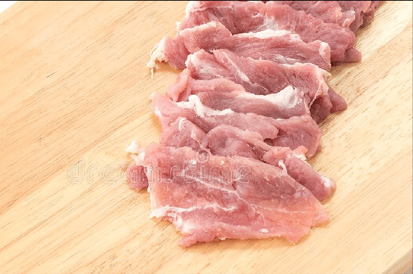 1、準備一塊豬裡脊肉,洗凈之後,切成薄片,很多人這樣處理完的肉片,直接往鍋子裡下,直接煮,這方法是錯誤的。