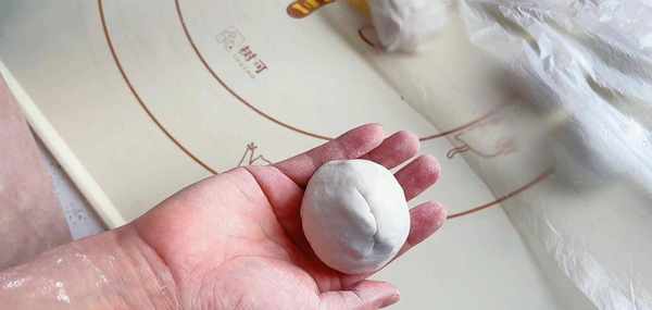 取一個面劑,揉成光滑的面團,然後用手捏一下,捏出一個小窩窩