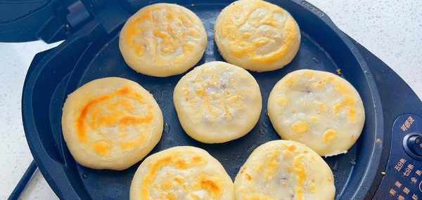 電餅鐺提前預熱 刷上一層食用油,一次放入小餅 表面再噴點食用油,蓋上蓋子開小火慢慢的烙, 這樣烙出來的小餅表皮才是酥的。