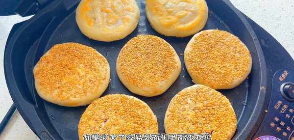 另一面烙至變色,再次翻面。中間一定要,反復翻兩次面,這樣可以讓小餅受熱均勻,直到把餅烙熟,這裡一定要小火,如果火大瞭, 容易外焦裡不熟,最後兩面烙成金黃色,用鏟子按壓小餅,軟軟的能回彈,說明就是熟透瞭,這樣就可以出鍋瞭。