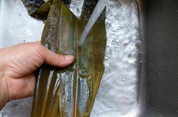 2.從冰箱拿出粽葉解凍,再清洗幹凈