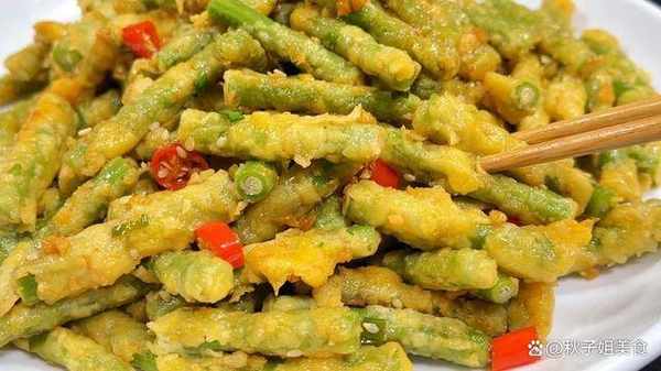 1、豆角清洗幹凈,切成小段。控幹水分,打入兩個蛋黃,兩勺面粉抓拌均勻,接下來把豆角放入蒸鍋裡面,平鋪均勻。全程大火上去以後蒸六分鐘。