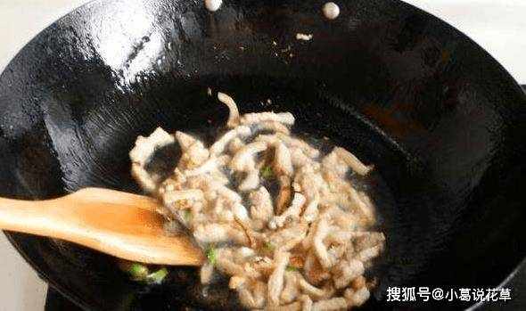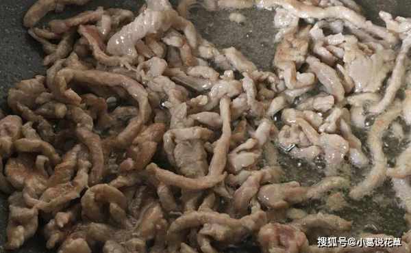 5、炒鍋一定要先燒熱,再加入冷油,然後將醃制好的瘦肉倒入炒鍋中,開大火,快速翻炒至肉變色。這樣炸出來的肉很滑很軟,不會粘鍋。還有一種不粘鍋的方法。鍋燒熱後,用生薑擦鍋面。再煎一次就不會粘鍋瞭。而且炸出來的肉更加嫩滑可口。