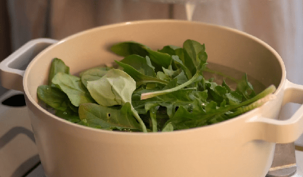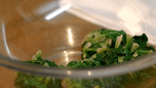 1、將菠菜清洗幹凈,放入開水中焯燙兩分鐘。撈出後過一遍冷水,用手輕輕抓幹水分。