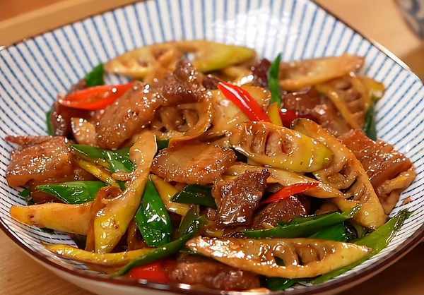 1.將春筍外皮剝掉,僅留鮮嫩部分。將春筍切成薄片兒,放入開水中,加入一勺食鹽,一勺食用油,焯燙兩分鐘,撈出後過冷水,瀝幹水分備用。