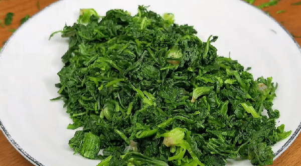 1.將薺菜清洗幹凈放入開水中焯燙一分鐘。撈出後放入冷水中。用手輕輕抓幹水分,再將薺菜切成小段,裝入盤中備用。