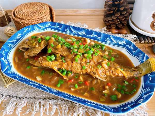 食材:黃姑魚1條、醬油、老抽、醋、料酒、白糖、鹽、蔥薑蒜、洋蔥、辣椒、水淀粉、食用油。