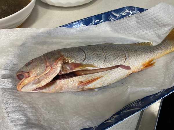 步驟1:黃姑魚處理幹凈,擦幹水分備用。