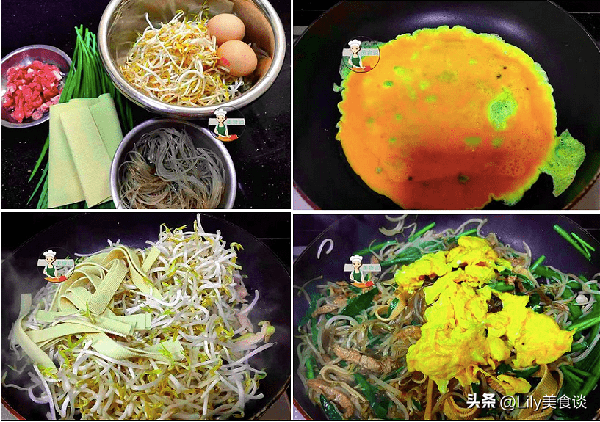 1、食材:瘦肉、粉條、綠豆芽、雞蛋、韭菜、豆皮。