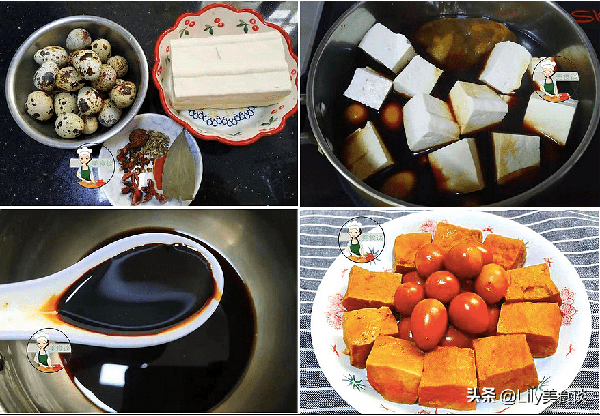 1、食材:鵪鶉蛋、老豆腐、鹵味大料、醬油、老抽、冰糖。