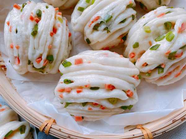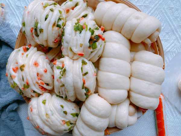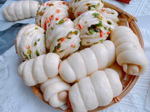 14、這樣做的饅頭顏色雪白、放涼瞭也不硬;而且按照上面的方法做好的蔥卷的蔥花顏色是翠綠的,不會發黃,影響口感、