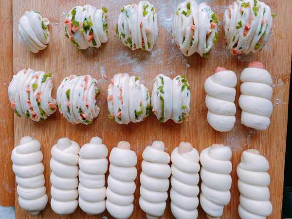火腿腸是小朋友最喜歡的零食之一,那用它來做的饅頭,小朋友也是喜歡的,而且雖說是火腿腸饅頭,我也做瞭2種造型,一種是普通的火腿腸花卷,另外一種是像“蟲”的火腿腸饅頭,兩種饅頭的做法都很簡單,搓一搓、卷一卷,就能做好。