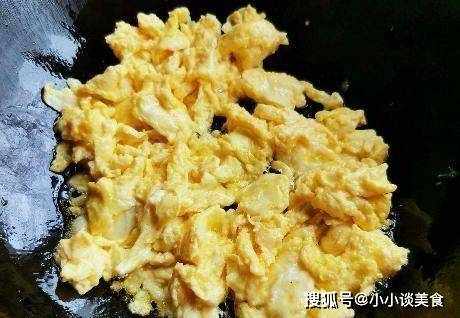 第三步,將平菇泡水,用手擠幹水,鍋中加入食用油,油燒熱,倒入蛋液,然後將雞蛋煎至Flip凝固。結束繼續炒。