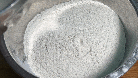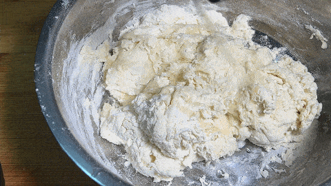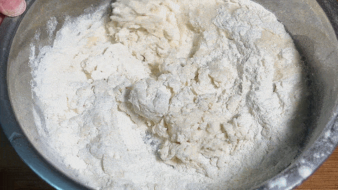 2. 用筷子攪成沒有幹面粉的面絮,