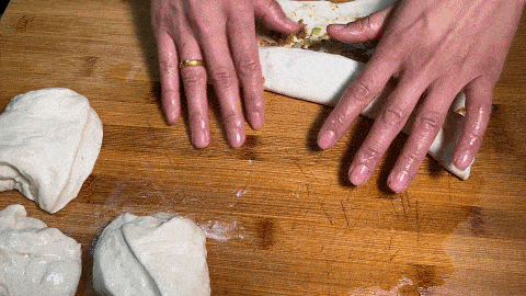 12. 然後從一端卷起來,制作成生坯