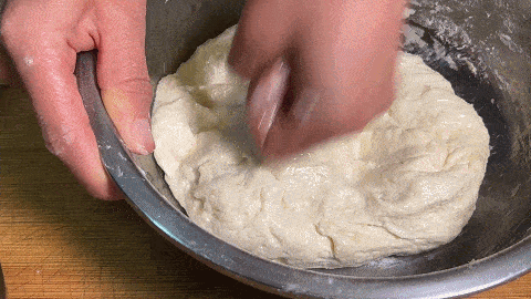 4. 用手錘壓成面團,然後蓋上蓋子醒面20分鐘
