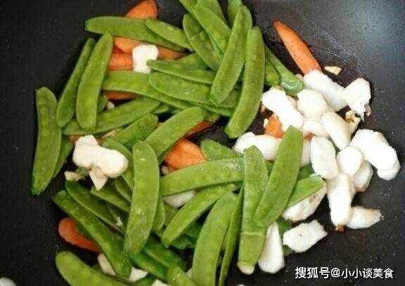 如果火候大,可以將調料放入鍋中炒一分鐘左右後準備。隻需加少許鹽和適量白胡椒粉,迅速炒勻,起鍋裝盤即可。因為荷蘭豆不宜炸太久,口感不會脆嫩,口感會松軟,而馬蹄本身可以生吃,不需要炸太久,主要是軟化胡蘿卜。想要省事的話,可以把胡蘿卜稍微焯一下,炒起來會更快!