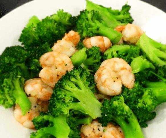在焯水之前,我們還需要做一個步驟,就是水燒開後加入鹽和幾滴油,這樣西蘭花才能保持綠色。不要燙太久,2分鐘就夠瞭。加入西蘭花並放在一邊。熱油燒開後,放入大蝦先煎一下。半熟時,加入西蘭花一起炒。煮熟後,您可以添加調味料。